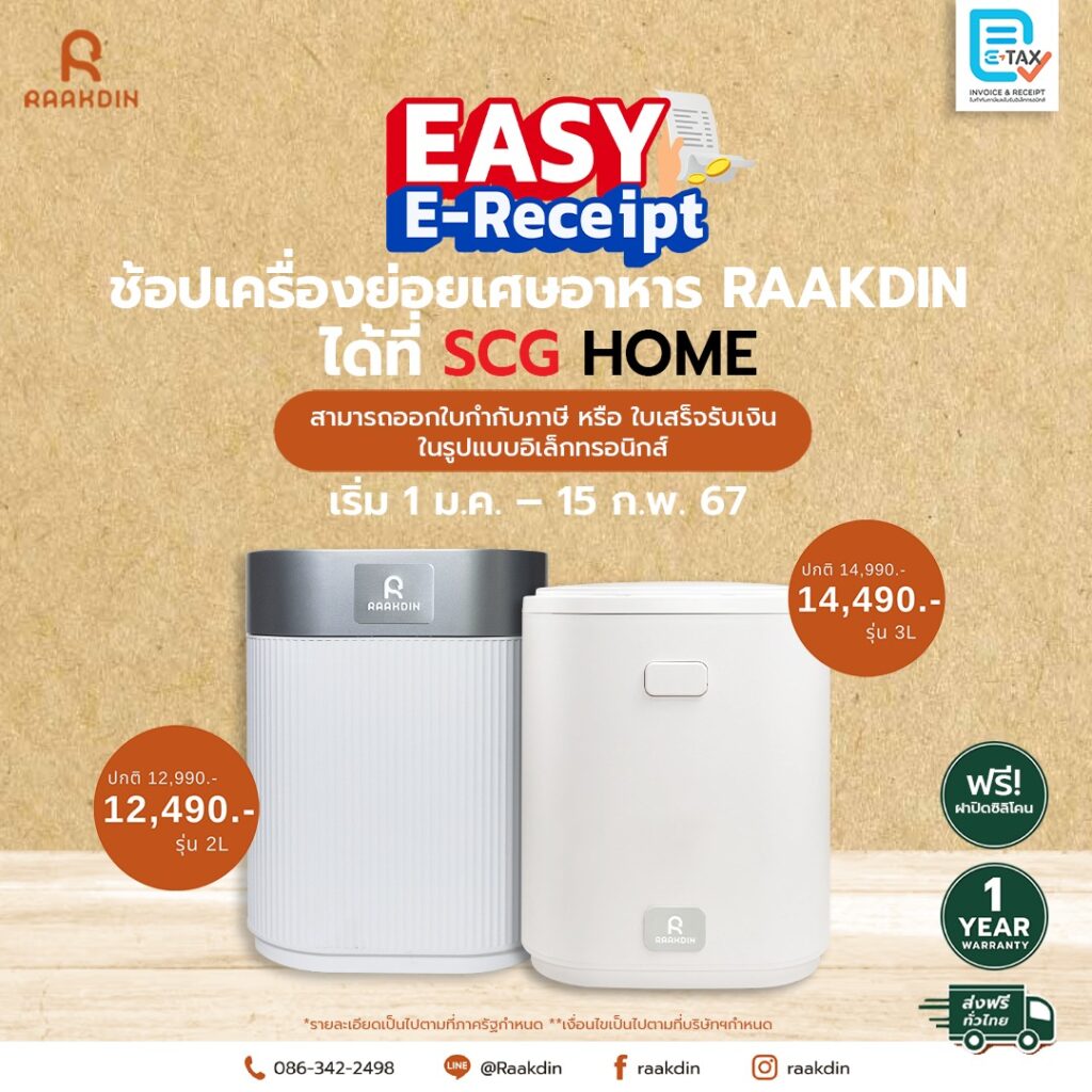 Easy E-Receipt ช้อปเครื่องย่อยเศษอาหาร RAAKDIN สามารถออกใบกำกับภาษี หรือ ใบเสร็จรับเงิน ในรูปแบบอิเล็กทรอนิกส์ (e-Tax Invoice & e-Receipt)